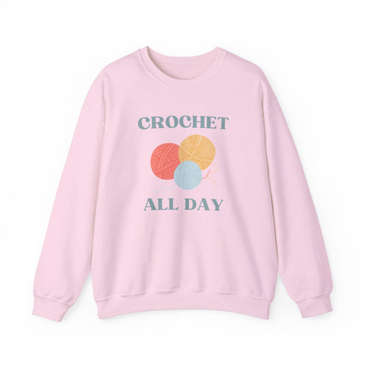 Crochet All Day Sweatshirt โ Crochet Lover Pullover with Yarn Graphic